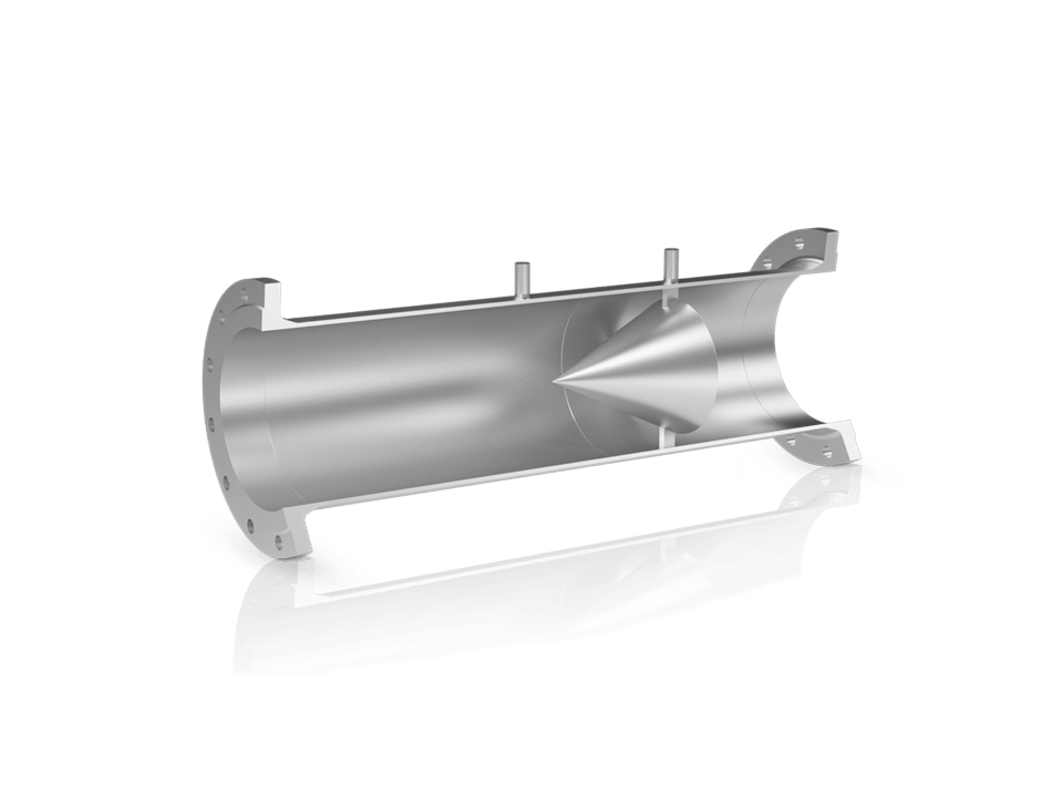 Дифманометр с коническим телом – это измерительный элемент для применений с перепадом давления с более короткими участками на входе/выходе, где отсутствует возможность использования других первичных преобразователей. Он поставляется предварительно полностью собранным в комплекте с установленным в закрытую трубу конусом, приваренным внутри измерительного участка. Выбор материалов для компонентов, контактирующих с измеряемой средой, очень разнообразен, что позволяет использовать любые материалы для моделей, изготавливаемых в соответствии со стандартом ISO 5167. Стандартные штуцеры отбора давления 1⁄2» или 3⁄4» имеют соединение под приварку встык или враструб, резьбовое или фланцевое соединение. Штуцеры отбора давления могут быть оснащены камерами для сбора конденсата и отсечными клапанами.