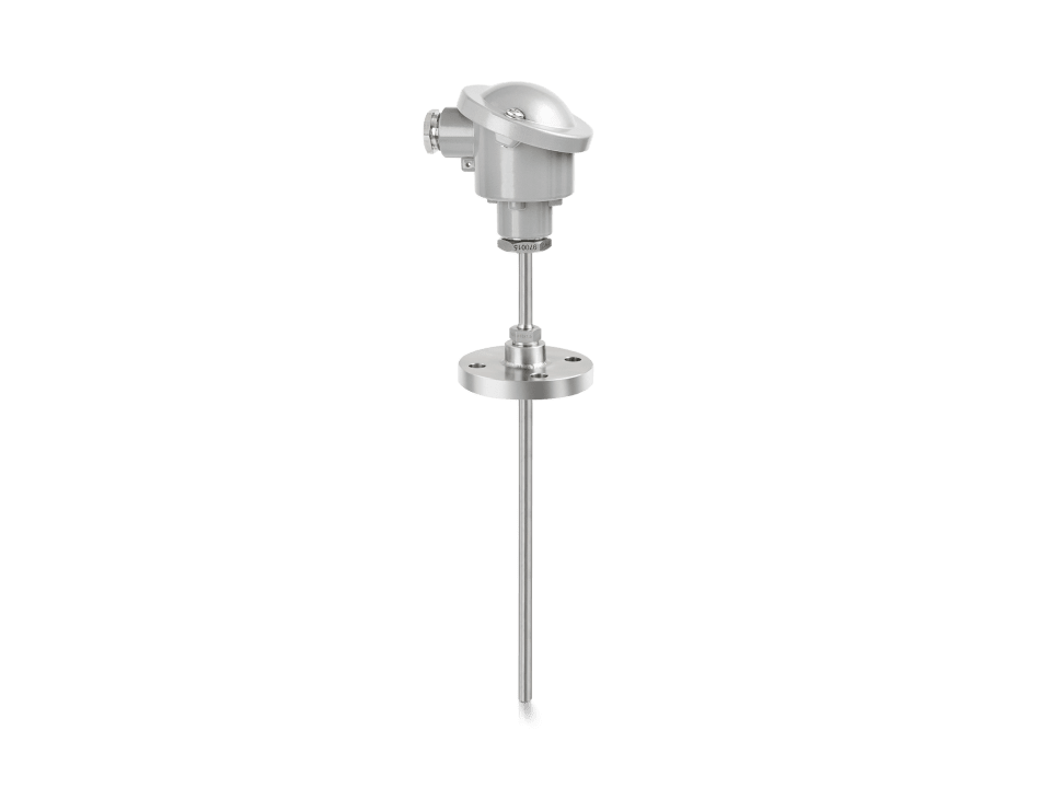 OPTITEMP TRA-TF33 представляет собой фланцевый термометр сопротивления с прямым сварным составным термокарманом. Датчик температуры для применений с повышенными требованиями подходит для использования на трубопроводах, резервуарах или реакторах с требованиями по высокой устойчивости термокармана к механической нагрузке (например, применения в нефтехимической или нефтегазовой промышленности). Преимуществом данного типа датчика является возможность использования компонентов, контактирующих с измеряемой средой, с покрытием (например, из ПТФЭ), что делает его устойчивым к воздействию агрессивных сред. Термометр сопротивления предназначен для измерения температуры сыпучих веществ, жидкостей, газов и пара до +600°C.