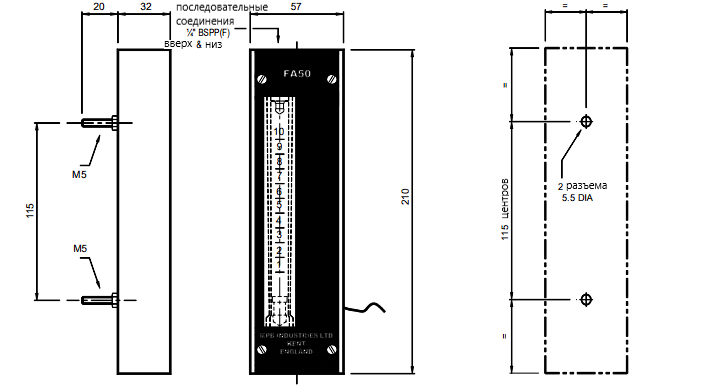 Сигнализатор потока FA50 MPB представляет собой расходомер и регулируемую систему сигнализации расхода в одном устройстве. Сигнализатор потока FA50 подходит для большинства распространенных технологических жидкостей и газов и использует принцип работы расходомера с переменной зоной, а именно: при увеличении расхода поплавок поднимается в конической трубке, что позволяет считывать расход напрямую и устанавливать точки сигнализации.