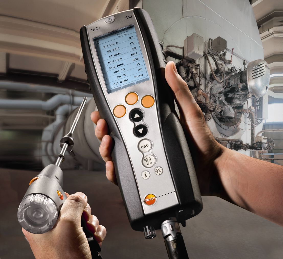Контроль выбросов на производстве: газоанализатор testo 340 — это профессиональная технология, простота в управлении и практичное исполнение в одном компактном приборе. Высокоэффективный анализатор дымовых газов testo 340 оснащен сенсором O2 с возможностью установки до 3-х дополнительных сенсоров.