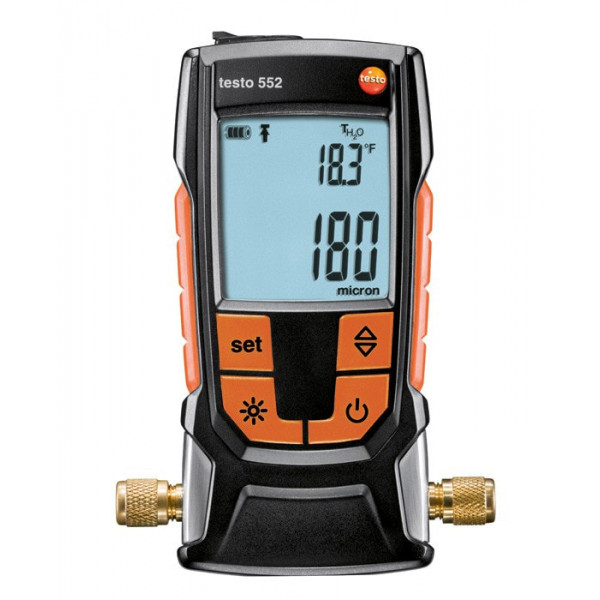 Вакуумметр Testo 552 — цифровой вакуумметр для вакуумирования холодильных систем и тепловых насосов. Прибор измеряет малейшие значения абсолютного давления и предоставляет высокоточные сведения о степени осушки системы (устранении посторонних веществ, вкл. масла или инородные газы).