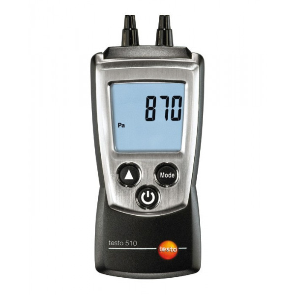 Данные могут отображаться в Паскалях по всему диапазону измерений. Магниты на задней части корпуса позволяют работать, не держа прибор в руках. Благодаря подсветке дисплея значения измерений с легкостью считываются, даже в условиях недостаточного освещения. В сочетании с трубкой Пито testo 510 может измерять скорость потока воздуха. Компенсация плотности воздуха позволяет получить более точные результаты измерений. Тesto 510 — очень удобный, компактный и легкий в управлении.