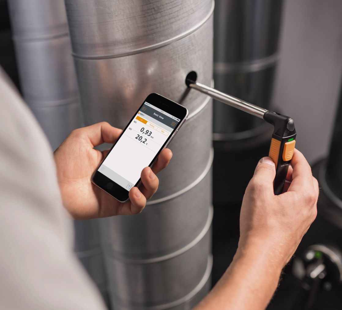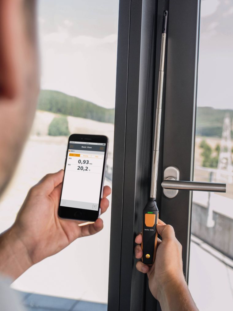 Смарт-зонд термоанемометр testo 405i, управляемый со смартфона, – идеальный прибор для проведения измерений в воздуховодах. С его помощью Вы сможете определять скорость потока воздуха, температуру и объемный расход воздуха. Также testo 405i подходит для измерения скорости потока воздуха в помещении, что удобно, например, при необходимости локализации негерметичных участков оконных конструкций. Также с его помощью (при одновременном использовании с термогигрометром testo 605i) можно рассчитать эффективность работы приточно-вытяжной вентиляции или системы кондиционирования.