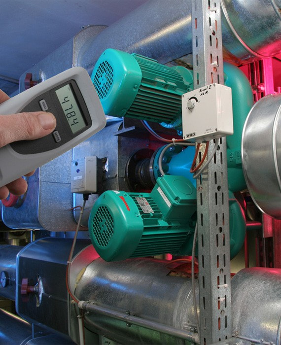 testo 470, идеальная комбинация оптического и механического измерения скорости вращения (об/мин). Можно проводить механические измерения просто присоединив адаптер наконечника зонда или вращающийся диск для контактного измерения скорости вращения.