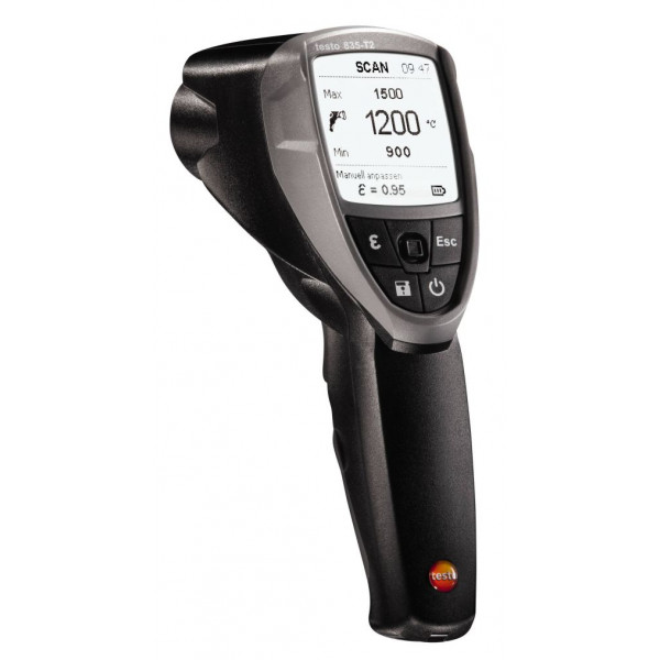 testo 835-T2, высокотемпературный инфракрасный термометр (до +1500 °С), с 4-х точечным лазерным целеуказателем, оптикой 50:1, функцией управления данными измерений; в комплекте с батарейками и заводским протоколом калибровки.