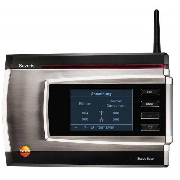 База является основным компонентом системы testo SaverisTM и позволяет сохранять до 40 000 значений на канал, независимо от ПК. Данный объем памяти соответствует измерениям в течение одного года с интервалом 15 минут, или приблизительно 18,000,000 значений. Данные о системе и сигнальные оповещения выводятся на дисплей Базы Saveris.