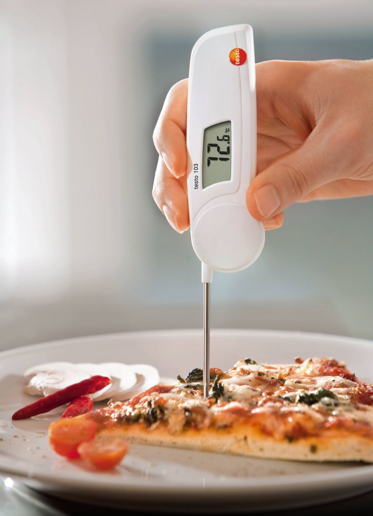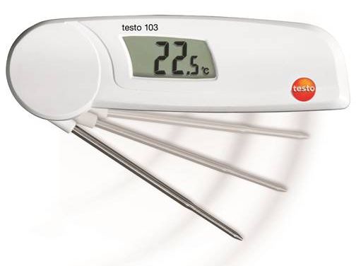 Складной термометр testo 103 предназначен для быстрого и точного измерения температуры пищевых продуктов — на производстве, в процессе хранения и переработки, в гастрономии, в сетях супермаркетов, в области розничной и оптовой торговли продуктами питания или в промышленном секторе.