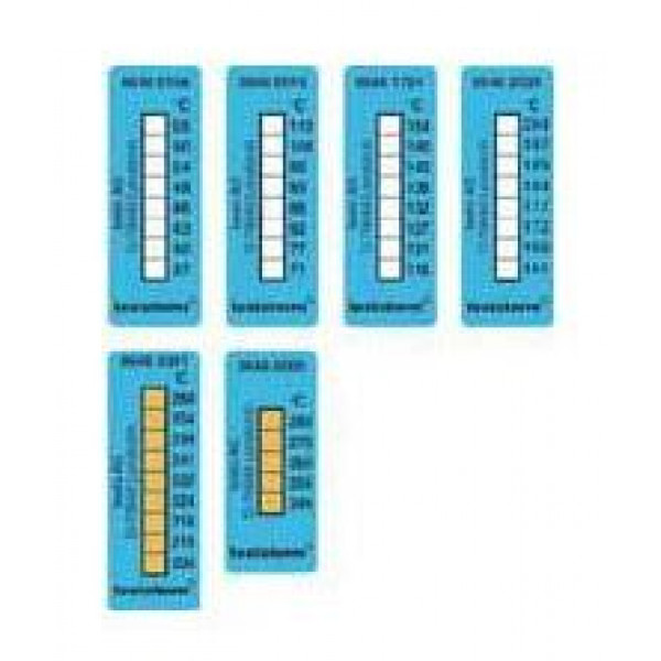 Термоиндикаторы testoterm (брошюра по 10 листков каждая), от +116 до +154 °C.