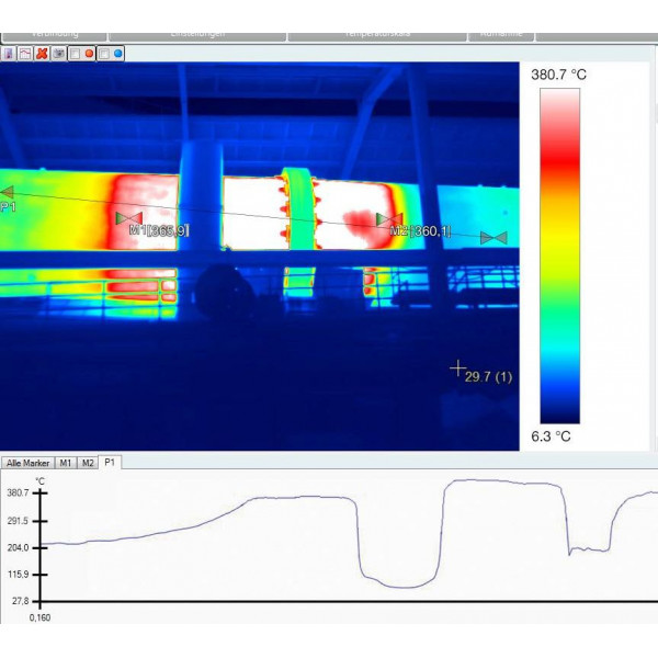 Визуализируйте тепловые процессы и анализируйте их в деталях с пакетом анализа процессов для тепловизоров testo 885 и testo 890. В ограниченных условиях эксплуатации последовательности термограмм сохраняются прямо в тепловизоре и сравниваются во временной последовательности с помощью программного обеспечения IRSoft. При подключении к ПК вы также можете сохранять термограммы в виде полностью радиометрического видео для последующего масштабирования и анализа.