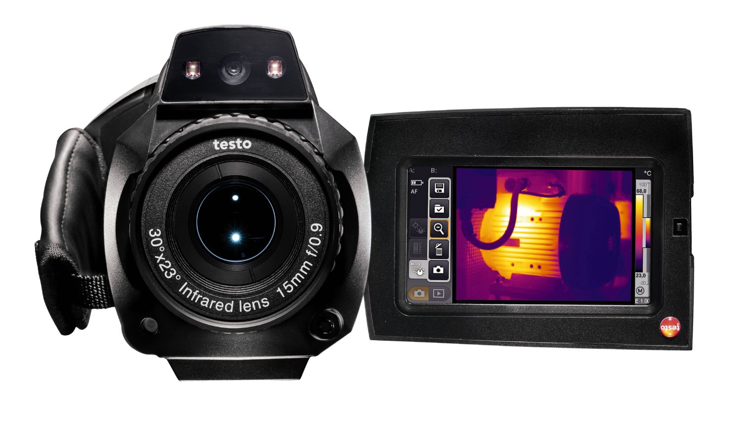 В комбинации с инновационной технологией Testo SuperResolution, тепловизор testo 885-2 способен создавать тепловые изображения превосходного качества (640 х 480 пикселей). Это означает, что Вы можете проводить прецизионную ИК-диагностику как мельчайших деталей, так и объектов, расположенных на значительном расстоянии.