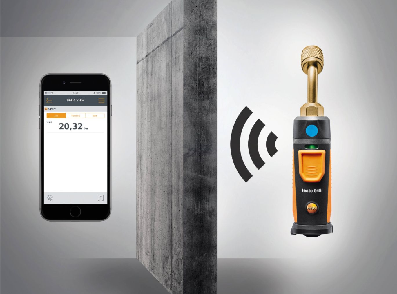 Testo предлагает вам максимальную мобильность при проведении измерений: в сочетании со смартфоном или планшетом портативный манометр высокого давления testo 549i используется для пусконаладки, сервисного обслуживания и диагностики систем кондиционирования и холодильных систем. Для этого вам не понадобится ни единого провода. Прибор быстро и легко устанавливается прямо на напорный патрубок. testo 549i существенно упрощает работу с удаленными друг от друга точками замера, поскольку все измеренные значения передаются на смартфон или планшет по беспроводному каналу.