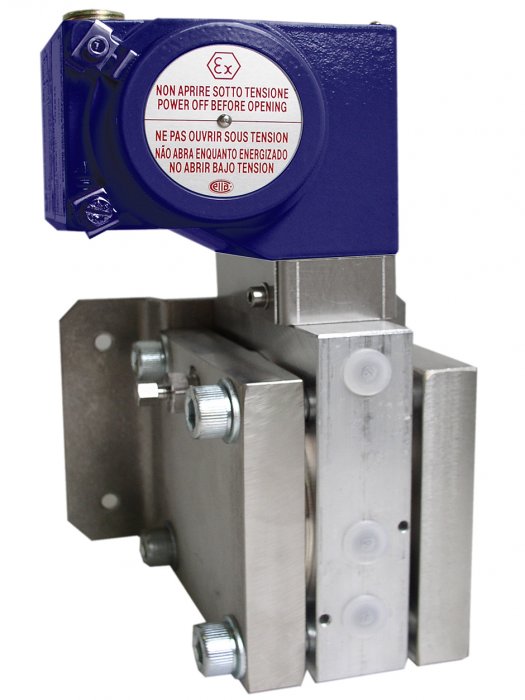 Технологическое присоединение с расстоянием между центрами портов 54 мм с присоединением снизу обеспечивает простоту монтажа на стандартном вентильном блоке.