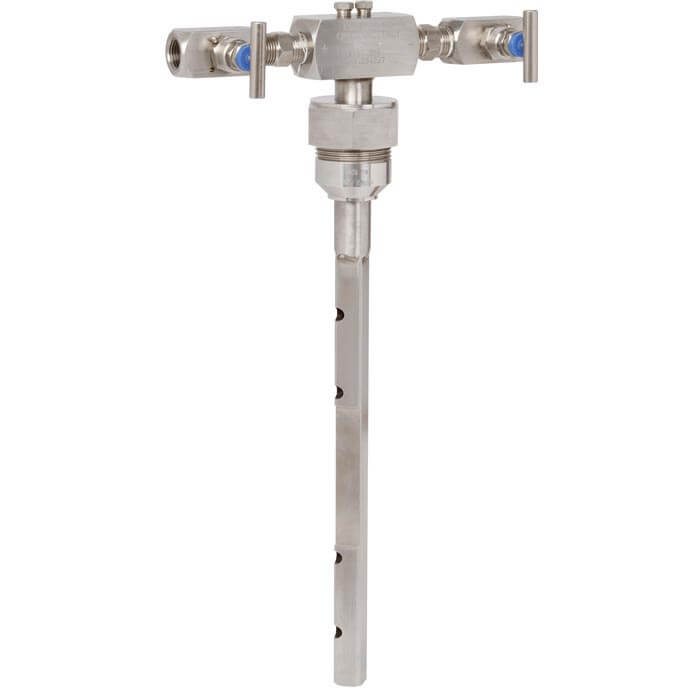 Трубка Пито FloTec используется для измерения расхода, в основе которого лежит принцип измерения дифференциального давления. Объемный расход рассчитывается по разнице между статическим и динамическим давлением по закону Бернулли с учетом внутреннего диаметра трубы. С помощью четырех динамических портов трубка Пито позволяет учитывать изменение профиля скорости потока по всему сечению трубы. Это обеспечивает более высокую точность измерения.